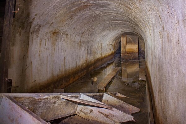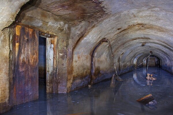 Теперь пройдём по затопленной второй потерне в сторону ещё одного, ныне снесённого выхода.