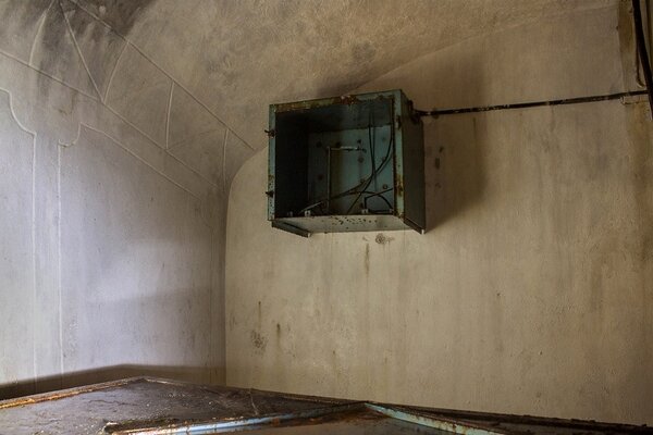 Вдоль стен этого помещения тянется множество розеток. Судя по всему, здесь размещался оперативный зал пункта управления, где работали представители различных заводских служб. Вероятно, здесь же была организована и проводная связь.