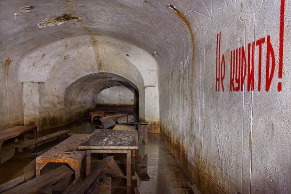 На стенах до сих пор сохранились следы прошлой жизни — например, предупреждающие надписи «Не курить!».