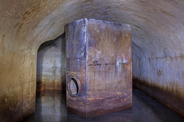 Сам вход не был оборудован массивными герметичными дверями — вместо них стояли обычные деревянные. Это кажется странным, ведь в то время бронированные двери уже широко применялись.