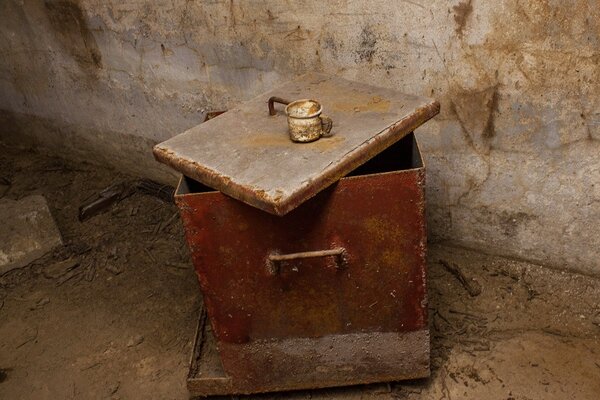 Рядом с ней валяется старый, вскрытый сейф — немой свидетель прошлой деятельности.