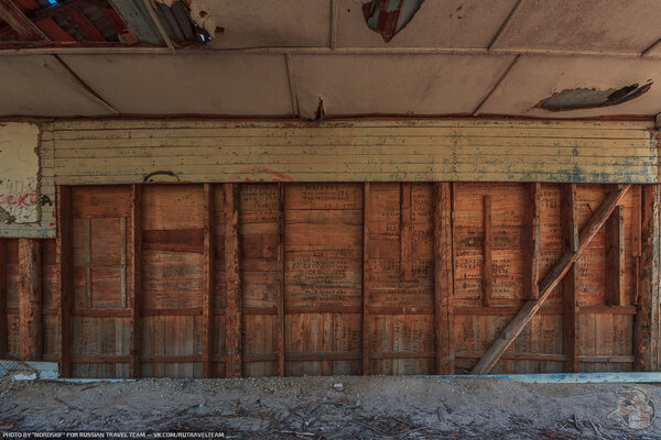 Первым на нашем пути стал лагерь «Восток-6», закрытый, судя по всему, около 15 лет назад. Сегодня от него остались лишь руины. Деревянные стены жилых корпусов, сколоченные из досок, напоминающих ящичные, не выдержали испытания временем.