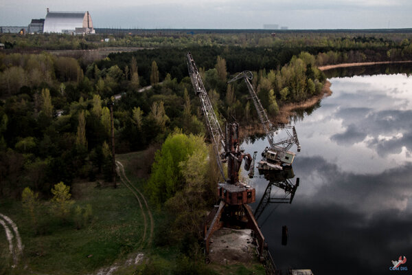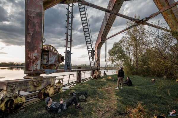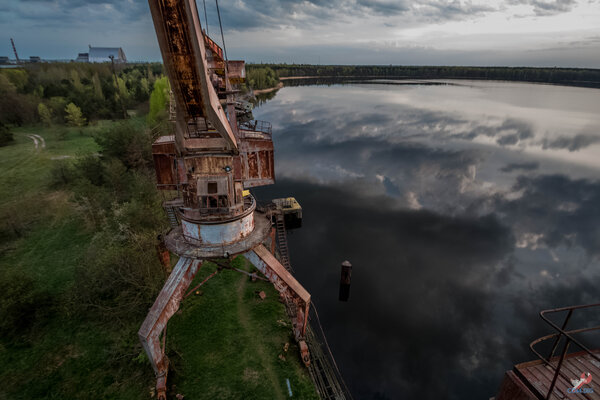 Добраться до легендарного грузового порта «Припять» в Яновском затоне нам удалось лишь на пятый день нашего апрельского нелегального похода по Чернобыльской зоне отчуждения. Этот объект, столь любимый сталкерами, оказался не так прост для посещения. Главная сложность заключалась в том, что самый короткий путь из Припяти к портовым кранам пролегал через ПВЛРО «Песчаное плато» — по сути, через могильник радиоактивных отходов.