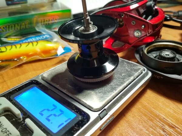 Кстати, шпуля вместе с центробежными грузиками и механизмом их регулировки весит довольно внушительные 22 грамма. Это немало, а значит, о серьёзной дальности заброса с лёгкими приманками (граммов до 10-12) можно забыть. Впрочем, меня это не слишком беспокоит, потому что этой катушке как раз предстоит работать с воблерами весом 15-26 грамм. Но подробный отчёт о её работе в реальных условиях я планирую сделать примерно через месяц, после того как опробую её на водоёме.