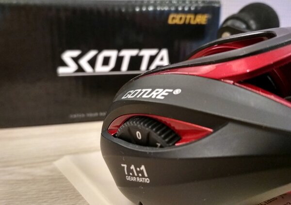 Теперь у меня в руках симпатичная катушка Goture Scotta. Она оснащена двойной системой торможения (центробежным и магнитным) и в целом представляет собой классическую «мыльницу». Дизайн очень напоминает Daiwa Fire Wolf — выглядит, надо сказать, солидно.