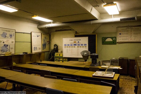 В углу класса сидел манекен, облаченный в костюм дозиметриста. Именно такой специалист, согласно инструкциям, должен был после ядерного удара подняться на поверхность и проводить замеры уровня радиации.