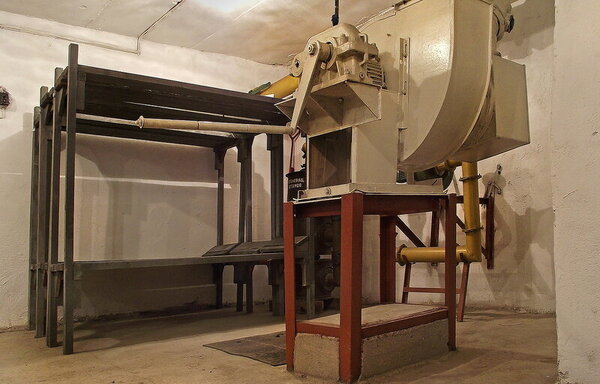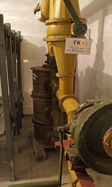 Рядом с ним, прямо в зале, стоит установка чистой вентиляции. Она оснащена и электроприводом, и ручным редуктором — на случай, если электричество откажет.