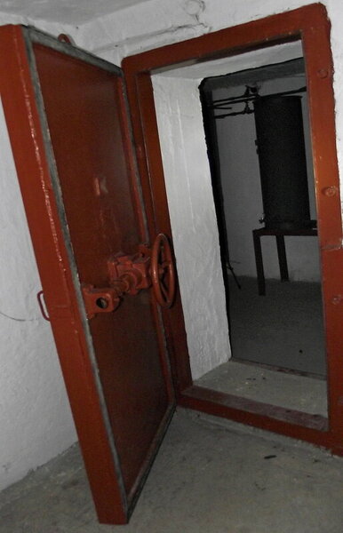 Вход прикрывает стандартная защитно-герметическая дверь, а прямо над ней в потолке устроена вентиляционная шахта.