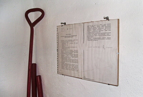 На стенах развешаны инструкции по эксплуатации убежища и памятки о действиях в различных чрезвычайных ситуациях.