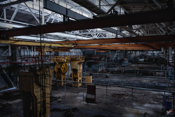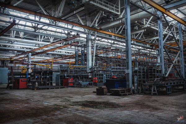 Часть оборудования демонтирована, но процесс словно заморожен. Создается впечатление, что кто-то резко приказал остановиться, и всё так и осталось.
