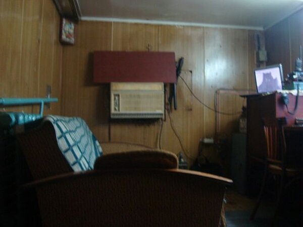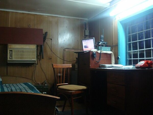 А вот так выглядит изнутри вагончик, где несут службу охранники на КПП «Припять». Обстановка простая, но всё необходимое есть: диван для отдыха, стол, стул, ноутбук и, конечно, рация для связи. Со светом и теплом проблем нет. Иногда, чтобы скоротать время, дежурные даже запускают на ноутбуке игру «S.T.A.L.K.E.R.» — получается очень атмосферно.