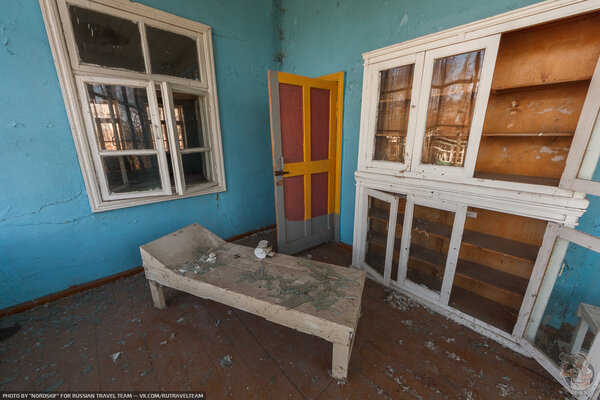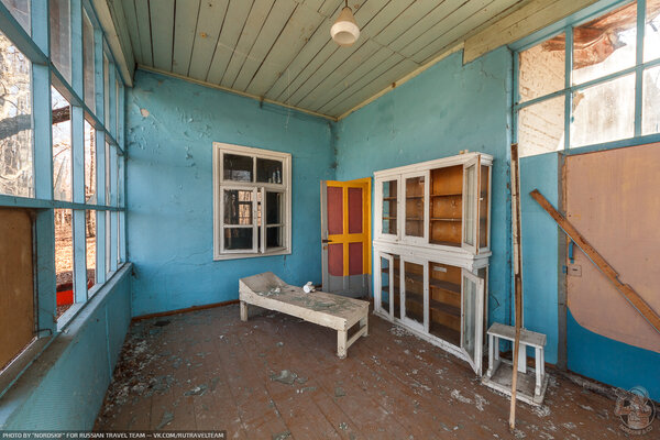 Сам пионерлагерь состоял из нескольких одноэтажных зданий. Среди них были как жилые, так и служебные корпуса, например, вот этот медпункт.