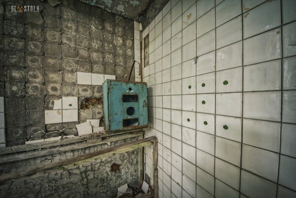 Уровень радиации здесь, по меркам Зоны, невысок — всего 1-10 микрорентген в час. Однако кто-то, видимо, для полной ясности, наклеил на кафельные стены небольшие значки радиационной опасности, напоминающие о том, где ты находишься.