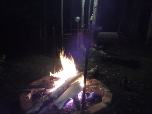 Наш костер весело потрескивал, хотя мы и запустили генератор. Огонь давал дополнительный, живой свет и согревающее тепло — в ту ночь синоптики обещали похолодание до +1 градуса.