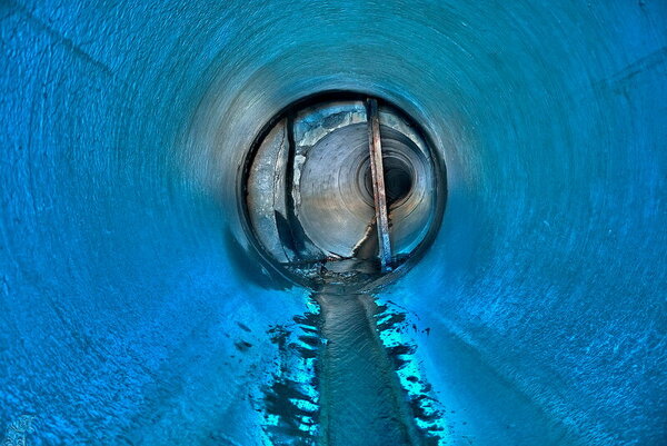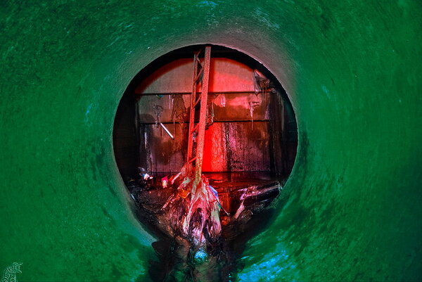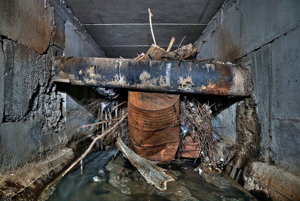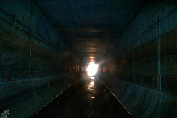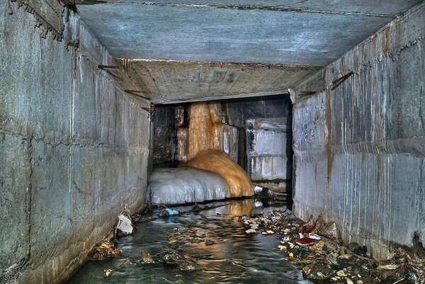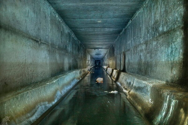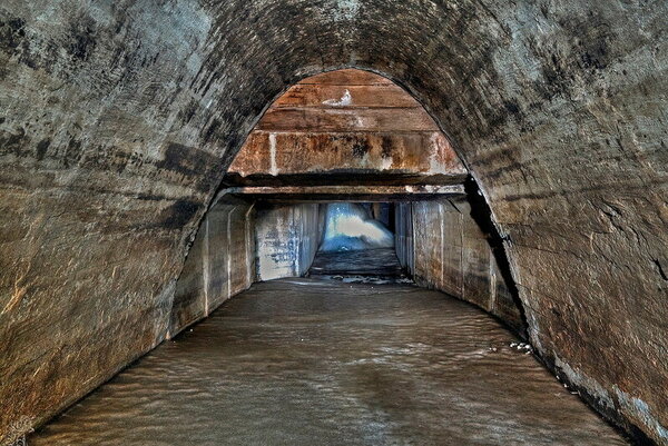 Большая часть коллектора имеет прямоугольное сечение. Через определённые промежутки встречаются расширенные камеры с ливневыми колодцами.