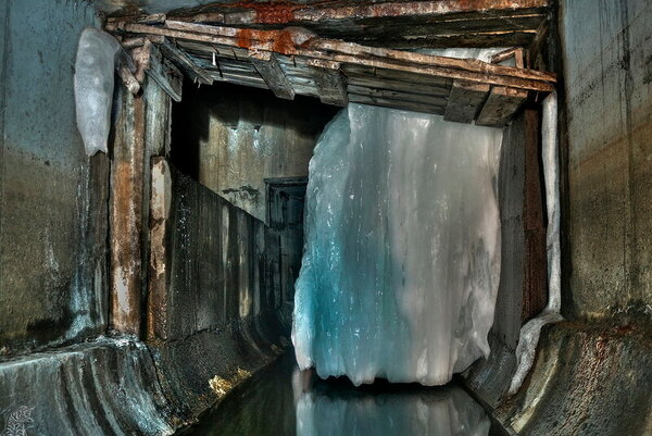 И снова лёд. Справа видна стенка небольшого бассейна-отстойника. Так и не понял его точного назначения.