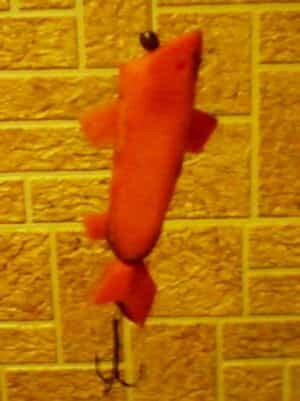 В воде эта самоделка ведёт себя ничуть не хуже многих фабричных приманок. При рывковой проводке она реалистично переваливается с боку на бок, демонстрируя хищнику свою уязвимость.