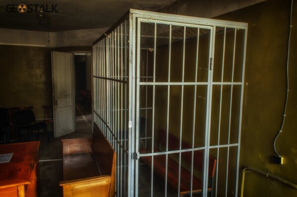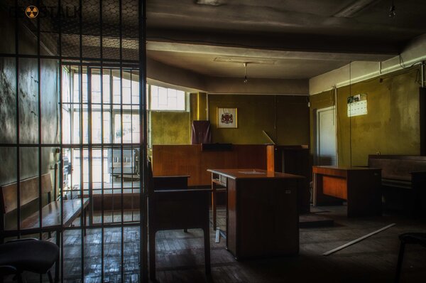 Поскольку здание пустует совсем недолго, а попасть внутрь довольно сложно, все помещения сохранились в практически первозданном виде. На двух этажах расположились два зала судебных заседаний, рабочие кабинеты сотрудников, гардероб, архив и даже камеры для задержанных.