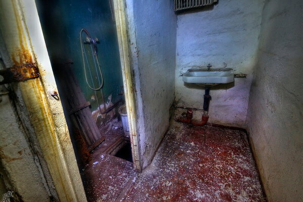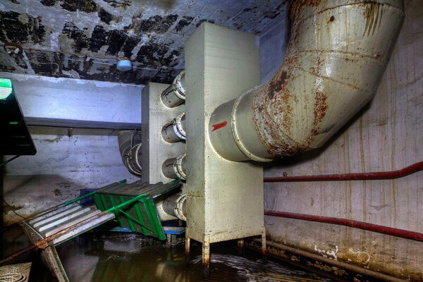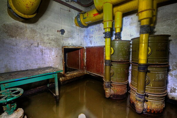 Интересно, что в мирное время пользоваться туалетами в убежище было строго запрещено. Все стоки собирались в специальную ёмкость под полом, из которой их предполагалось откачивать через выведенный наружу колодец.