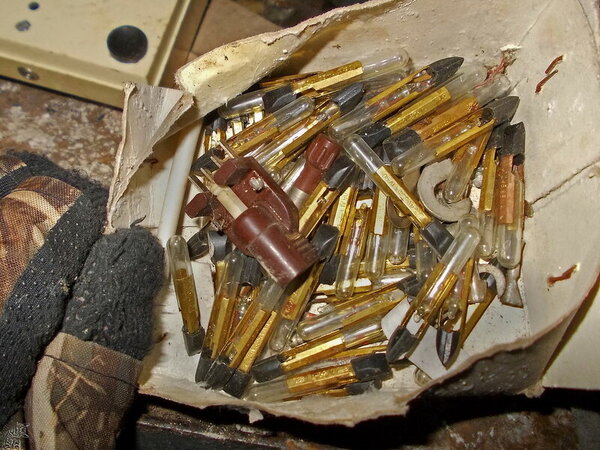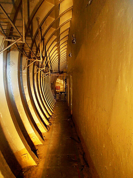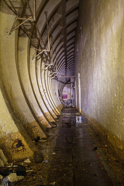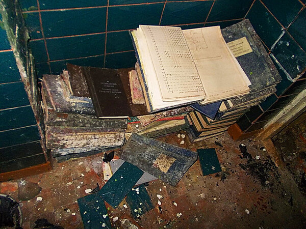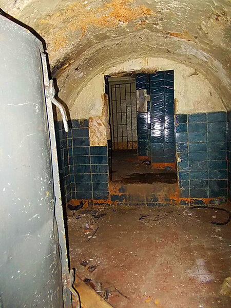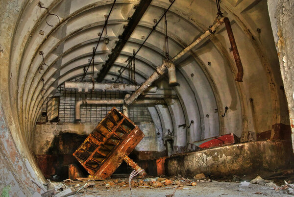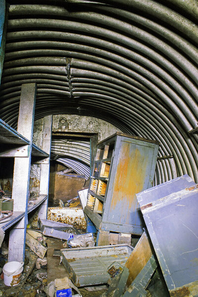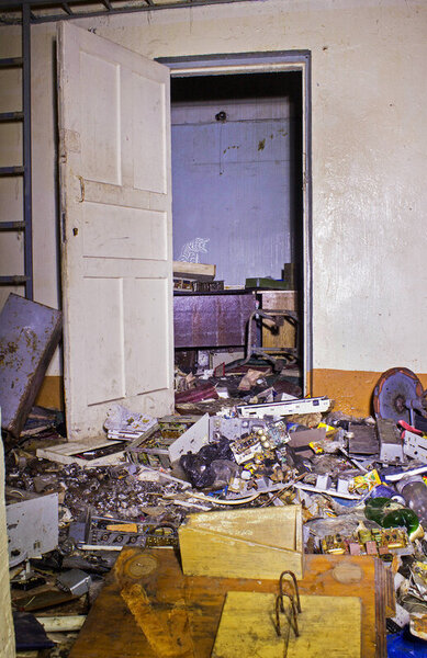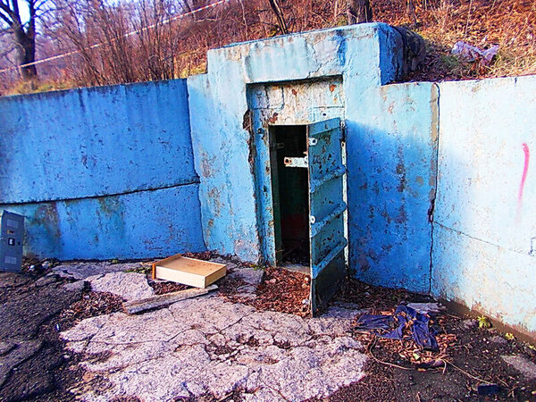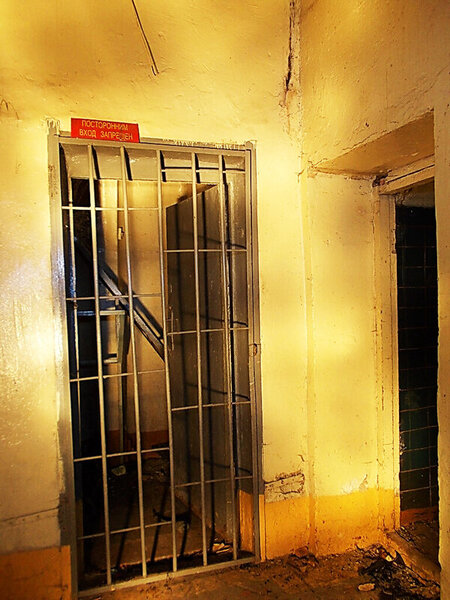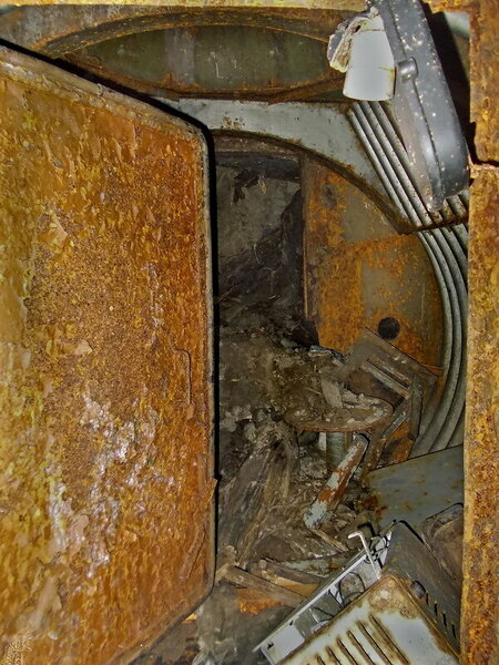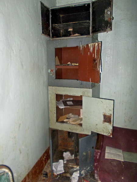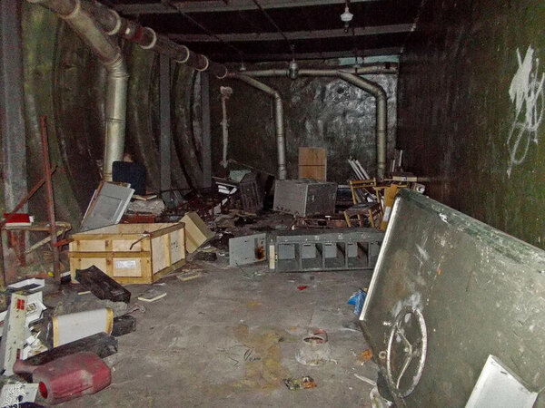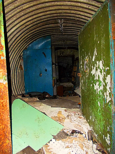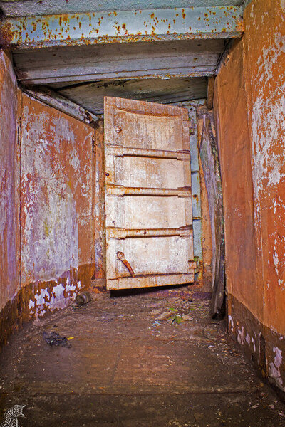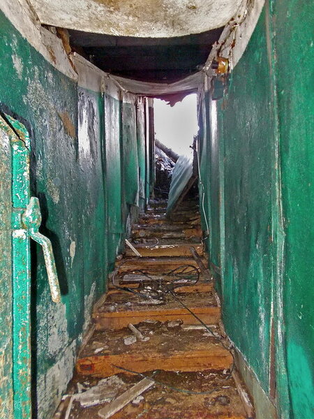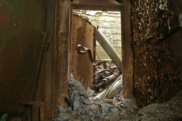 В 2012 году сюда пришли сборщики чёрного металла и активно принялись за работу, которая продолжается до сих пор. На фото видна уже срезанная и подготовленная к вывозу гермодверь.