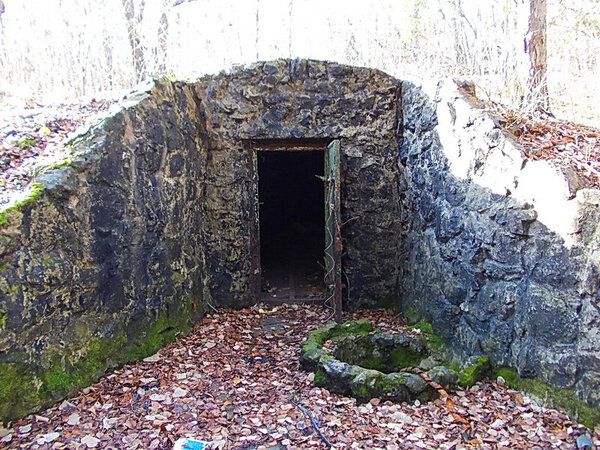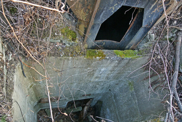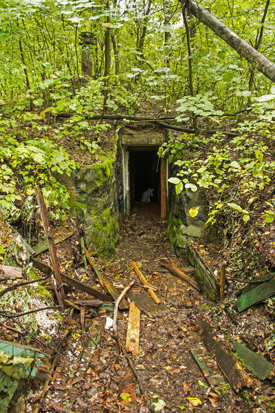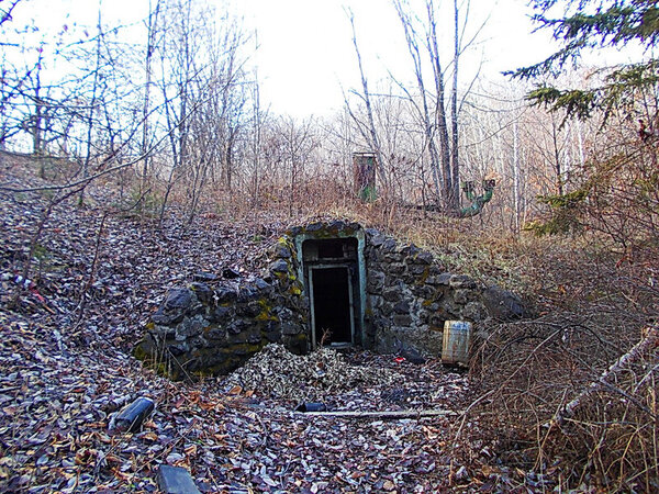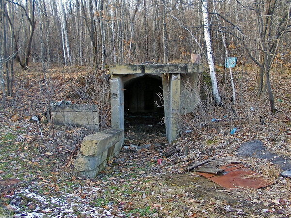 В тыльной стенке даже сохранилась наполовину закопанная гермодверь.
