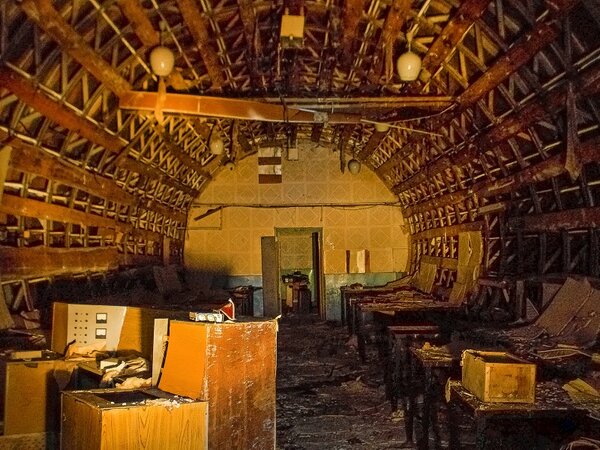 Этот объект был построен из быстровозводимых сборных конструкций. Уже в те годы они не могли выдержать прямого попадания авиабомб, но их главной задачей было не это. Конструкции отлично маскировали всё, что находилось внутри, среди густого леса, а также помогали поддерживать постоянный микроклимат, что было критически важно для стабильной работы чувствительного приёмно-передающего оборудования.