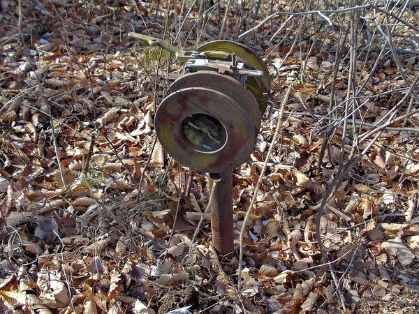 На вершине искусственного холма, среди деревьев, были установлены антенные мачты. Одну из них нам ещё удалось застать на месте.
