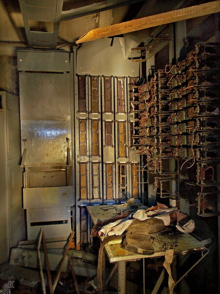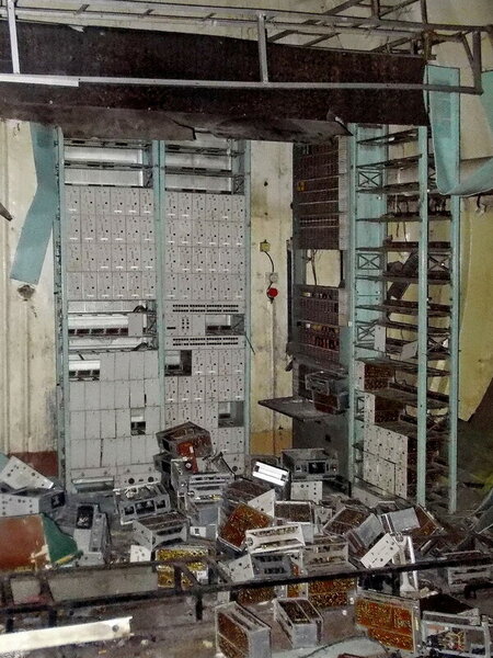 Остатки аппаратуры узла связи. Здесь когда-то располагались пакетные предфильтры.