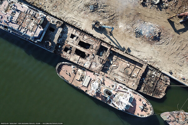 Снимки с дрона отлично передают масштаб работ и общее состояние кораблей.