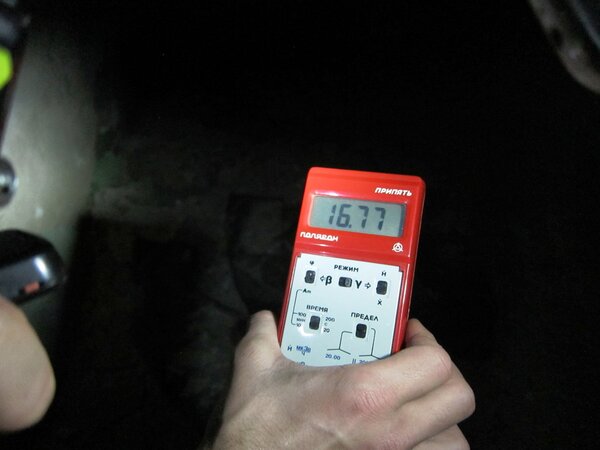 В подвале скопилось огромное количество радиоактивной пыли. Даже кратковременное нахождение здесь без средств защиты органов дыхания может спровоцировать развитие рака лёгких через несколько лет после такого визита. Мы заходим внутрь только в специальных защитных костюмах и респираторах. Всю эту экипировку, включая обувь, мы оставляем на выходе — её фон после посещения подвала составляет около 400 микрорентген.