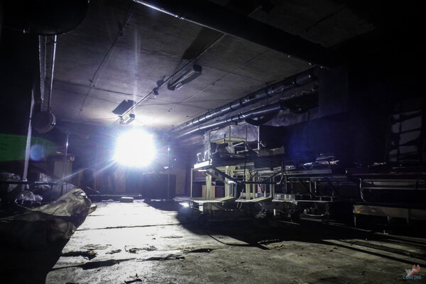 Всё разбросано по центральному залу, площадь которого составляет около пятисот квадратных метров. Когда-то здесь кипела жизнь: работало освещение, функционировал дизельный генератор.