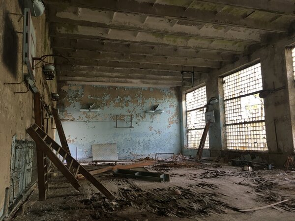 К сожалению, здание школы №1 обрушилось более десяти лет назад, и это стало ключевой причиной официального запрета для туристических групп посещать любые заброшенные и аварийные сооружения в радиоактивной зоне. Мне же удалось побывать внутри, поскольку я находился здесь неофициально и, разумеется, полностью осознавал всю ответственность и риск такого проникновения.