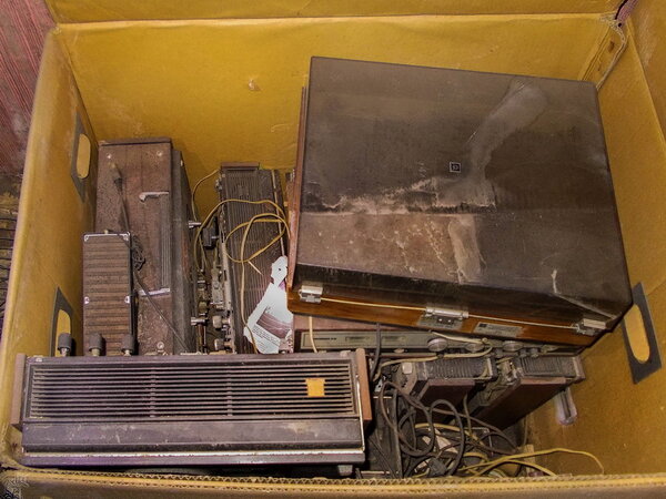 В одном из углов стояла коробка со старыми магнитофонами и проигрывателями виниловых пластинок.