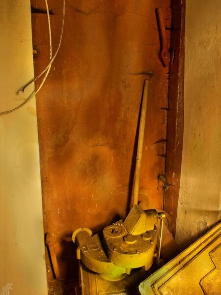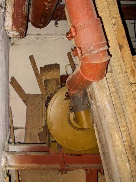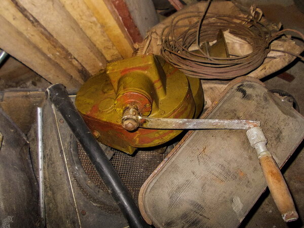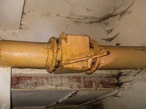 На воздуховоде сохранилась вентиляционная заслонка, установленная ещё во время строительства убежища.