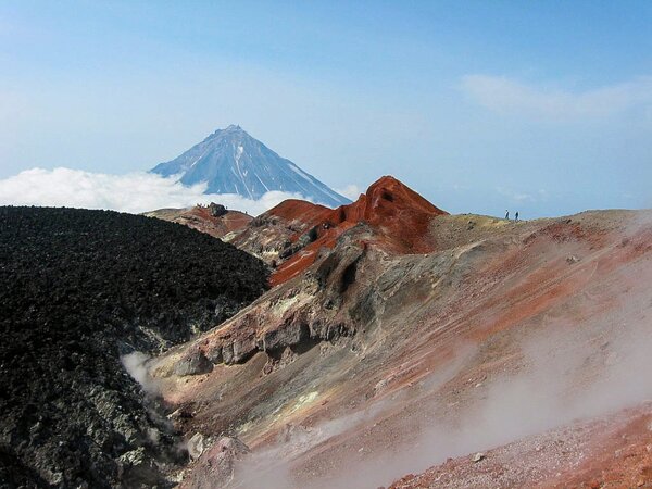 Рядом возвышается ещё один действующий гигант — вулкан Корякский. Во время подъёма на Авачу открывается потрясающий вид на его величественные склоны.