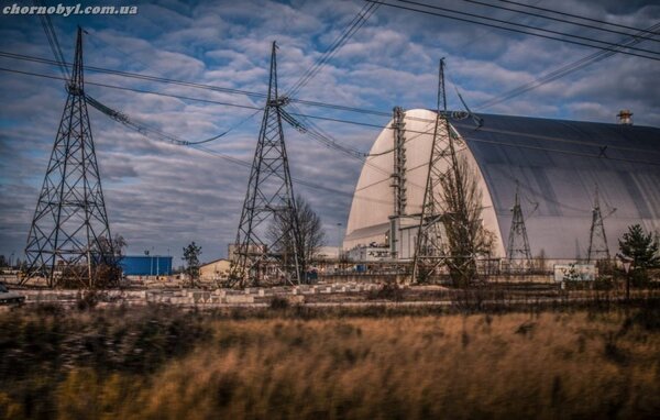 2011 год, вид на ЧАЭС из Припяти, первый объект укрытие (Саркофаг)