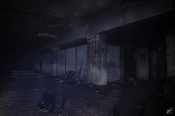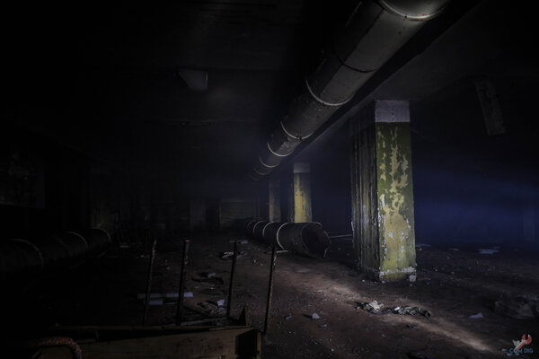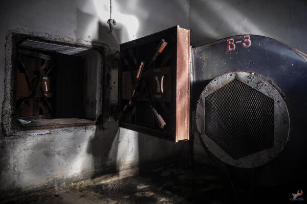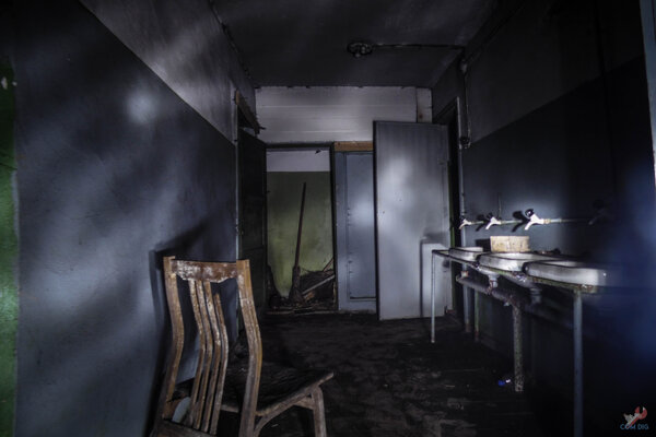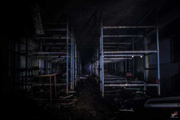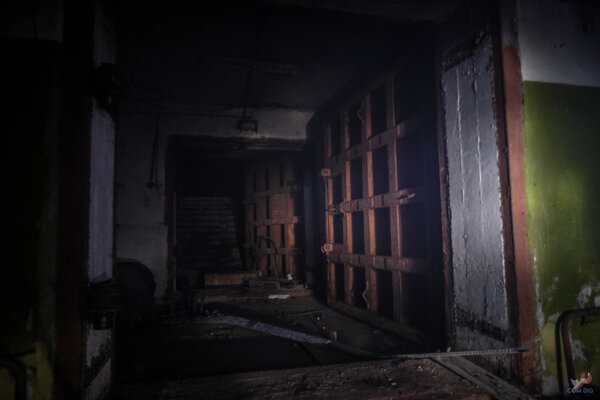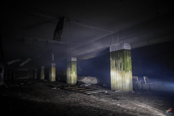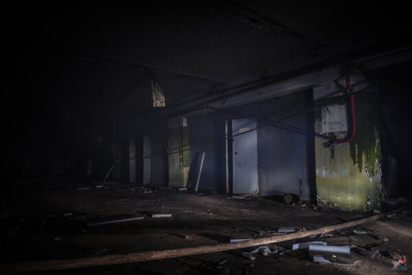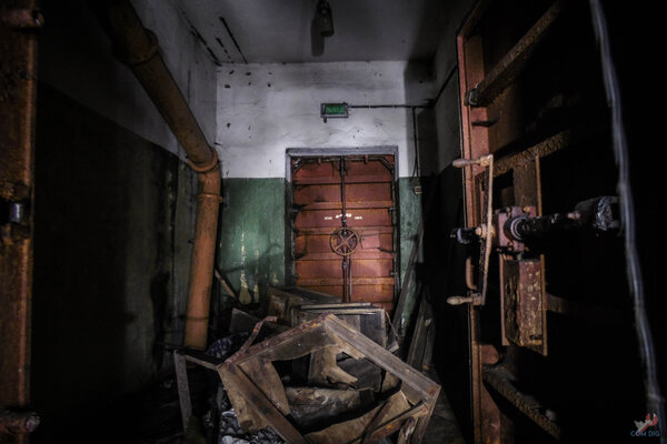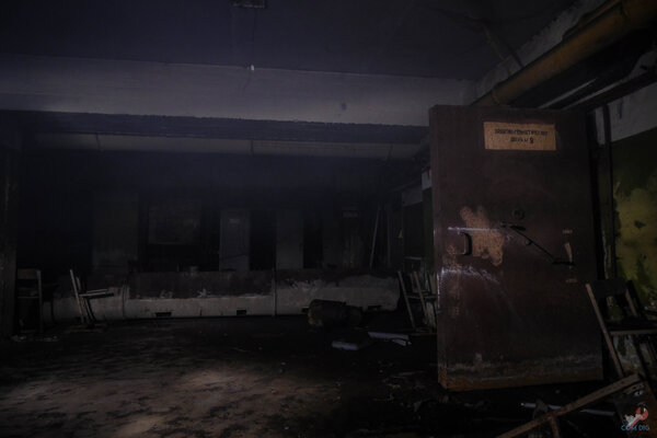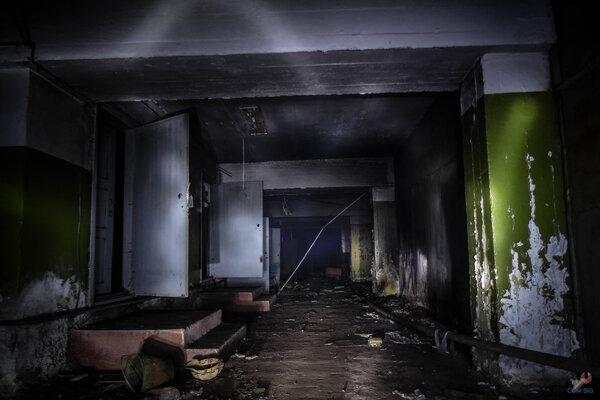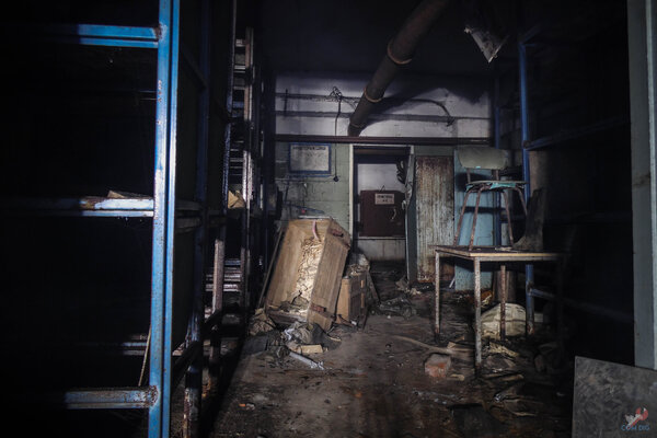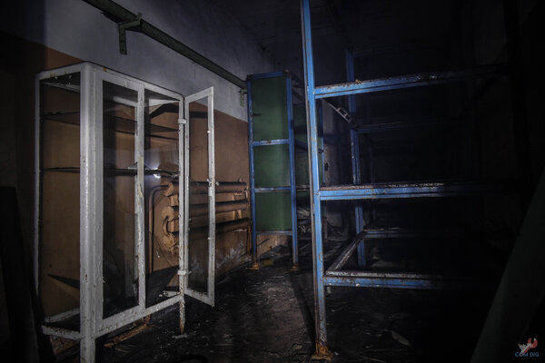 Это убежище, некогда принадлежавшее советскому заводу, оказалось заброшено не так давно. Однако за короткий срок оно успело стать настоящей меккой для местных любителей индустриального туризма — кажется, каждый, кто интересуется подобными местами, уже успел здесь побывать. Ходят даже слухи, что однажды здесь отпраздновали Новый год. Как это часто бывает с объектами, ставшими общедоступными, убежище начали методично разворовывать. Сначала исчезли мелкие, но редкие детали, затем пропали противогазы, представлявшие хоть какую-то ценность. А мы застали его в самый неподходящий момент: без света, с разбросанным по полу инвентарём и, что самое страшное, в разгар пожара.