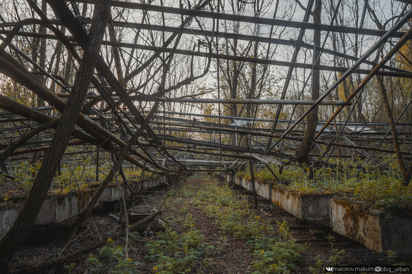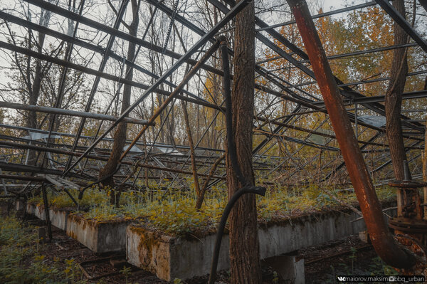 Наш путь лежал через бывшее тепличное хозяйство. Когда-то здесь, под стеклянными сводами, кипела жизнь, но теперь от былого величия не осталось и следа.