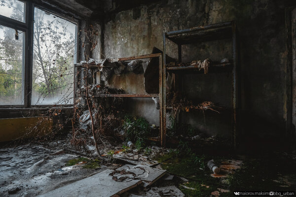 Следующей точкой нашего маршрута стал детский сад. Это здание успело послужить детям совсем недолго. Уже с 1991 по 1998 годы здесь размещались лаборатории объединения «Радэк», изучавшие последствия катастрофы.
