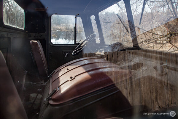 А вот внутри сохранность оказалась очень хорошей. Даже запасные колёса нашлись на своих местах.