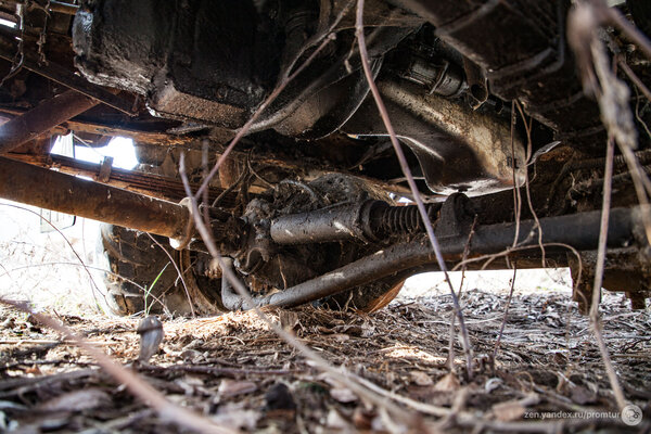 Передний мост и рулевая тяга. Видно, что «Шишигу» эксплуатировали на полную, не щадя.