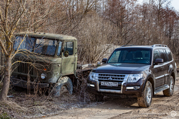 На прощание — два легендарных автомобиля в одном кадре: советский ГАЗ-66 и заслуженный Mitsubishi Pajero четвёртого поколения. Обидно, что классический Pajero уходит с нашего рынка. Это исключительный автомобиль для экспедиций. Пока ещё есть машины на складах, так что у желающих есть шанс его приобрести.