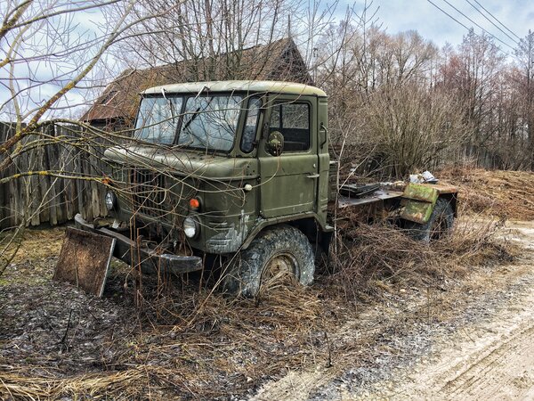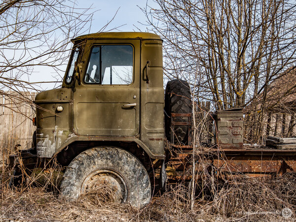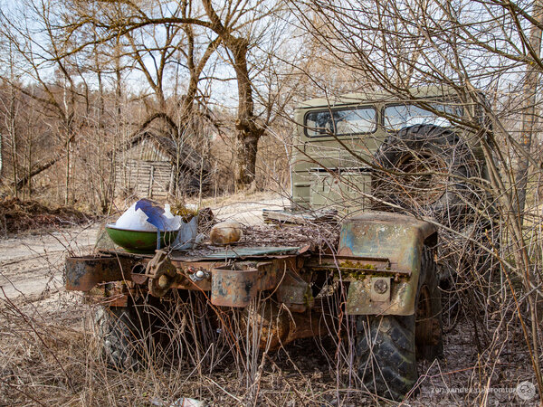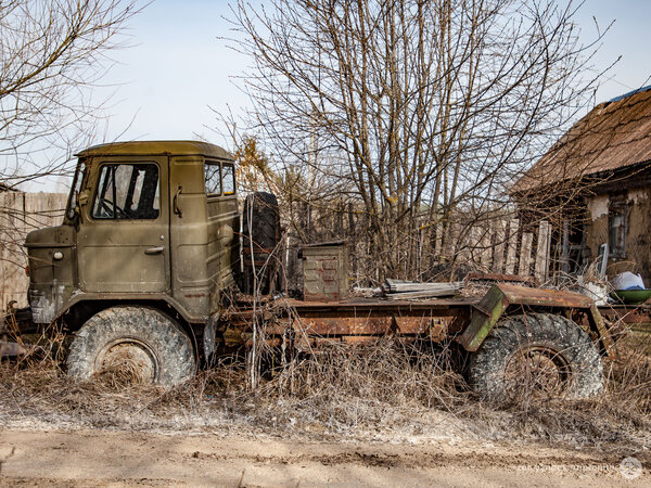 Мы въехали в остатки небольшой деревеньки. Чёрные, безжизненные дома, покинутые жителями, создавали атмосферу забытого мира.