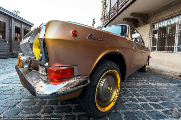 Внимательный наблюдатель сразу заметит непривычные номерные знаки — дело происходит в Баку. Автомобиль стоит на выходе из старого города, недалеко от знаменитого Приморского Бульвара.