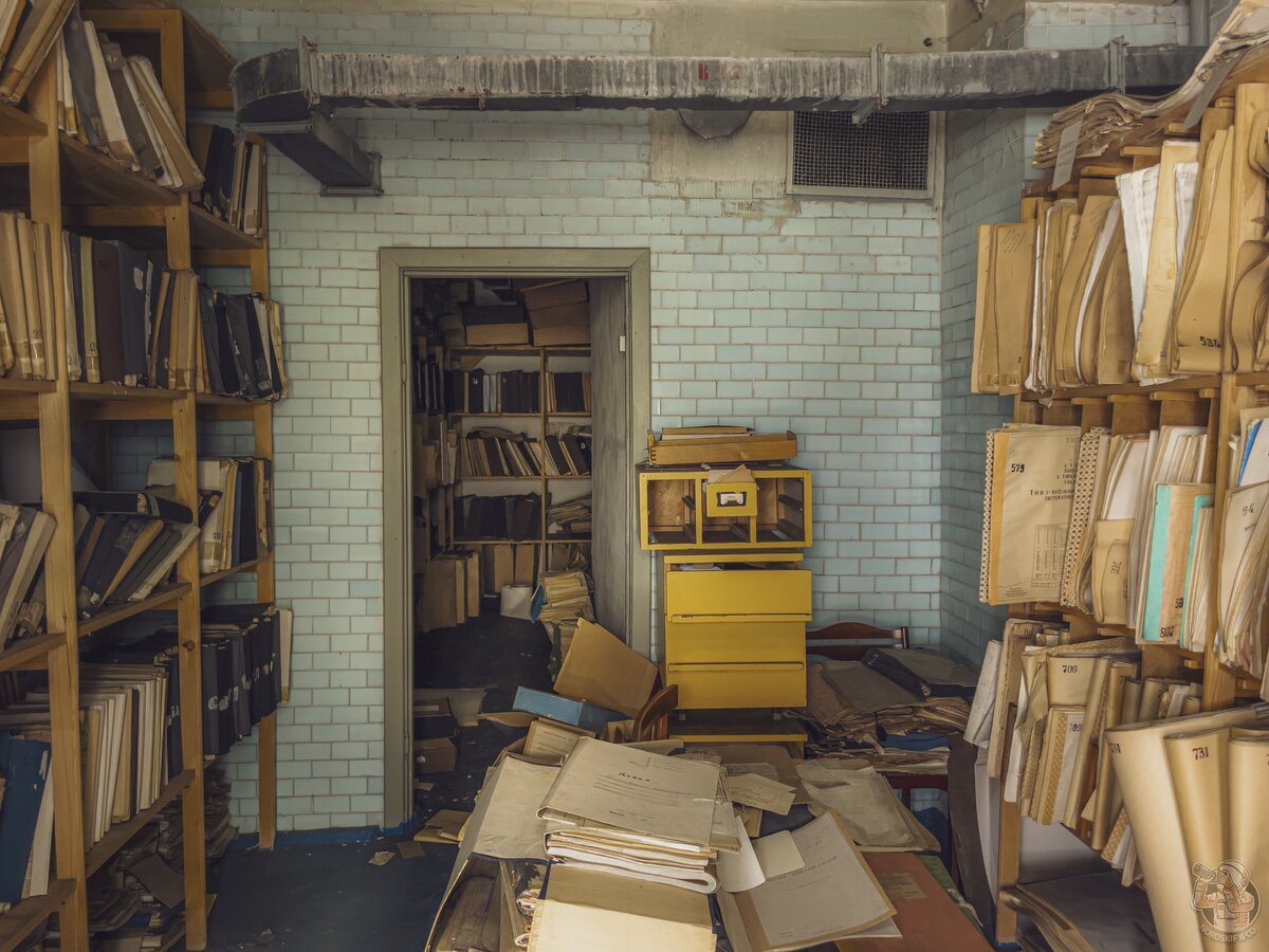 Рядом — архивная комната с учётными документами. Но и здесь, к удивлению, не обнаружилось привычных гор «макулатуры». Видимо, что-то успели вывезти или уничтожить.