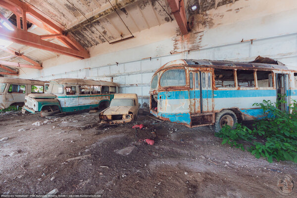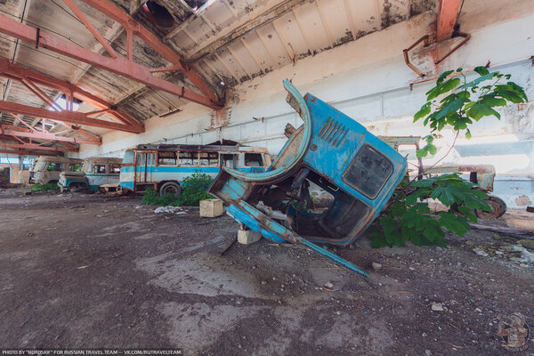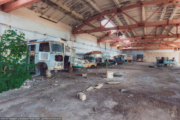 Скорее всего, эти автобусы когда-то развозили рабочих по домам.