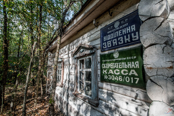 Двигаясь дальше, мы вышли к селу Красно. Там сохранилось здание сберегательной кассы и почты. Таблички на стенах — подлинные, советские, без следов ржавчины. Качество изготовления поражает: будто время их не тронуло.