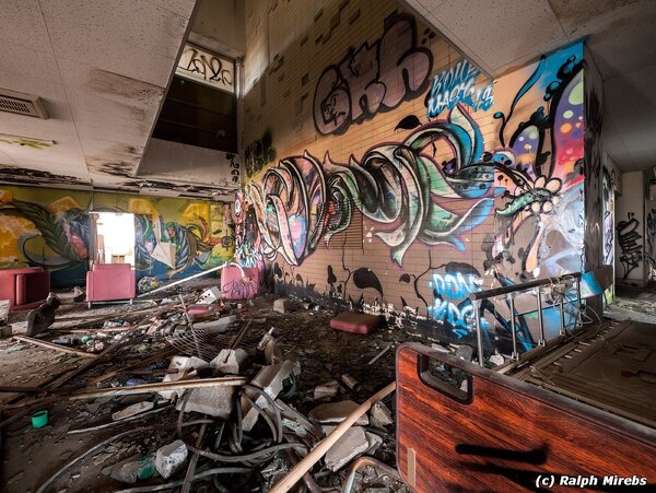 Заметил такую закономерность: в любой стране сохранность заброшенных зданий сильно зависит от этажа. Чем выше — тем обычно целее, а нижние уровни почти всегда разрушены сильнее. Причина проста: случайные посетители редко бывают любопытными и редко забираются в дальние уголки или на верхние этажи.