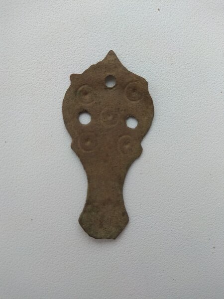 А ещё мы нашли вот такую деталь от застёжки книги, предположительно от Псалтыря.