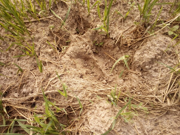 Это подтверждают и свежие следы лося на поле, а на деревьях неподалёку оборудованы два лабаза для охоты на этого зверя.